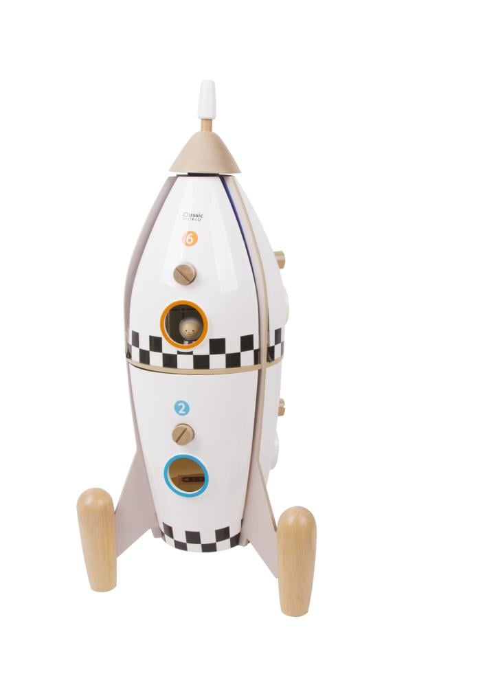 انطلق في رحلة فضائية مع صاروخ اللعب التخيلي! هذه اللعبة تجمع بين البناء واللعب التمثيلي، حيث يستطيع الطفل تركيب هيكل الصاروخ باستخدام مسامير خشبية، ثم تجهيز "مخيمات استكشافية" داخل الصاروخ بواسطة أعواد خشبية، لخلق تجربة لعب غنية ومتعددة الأبعاد