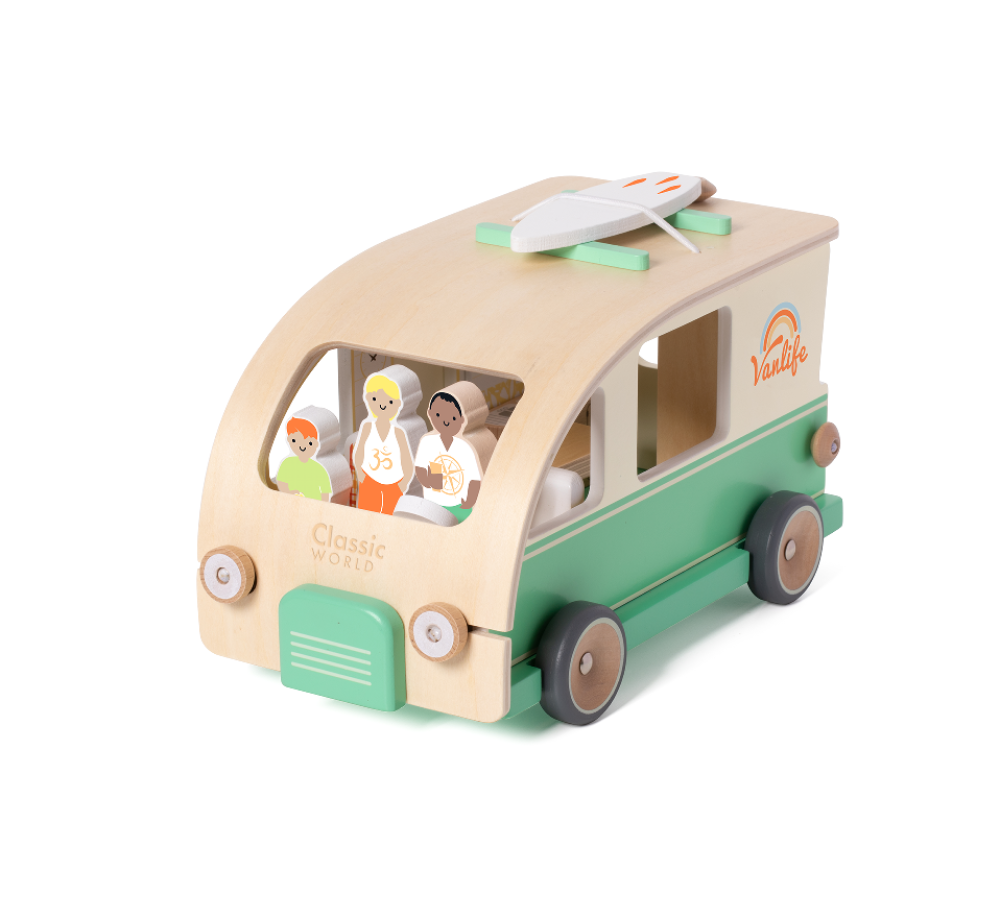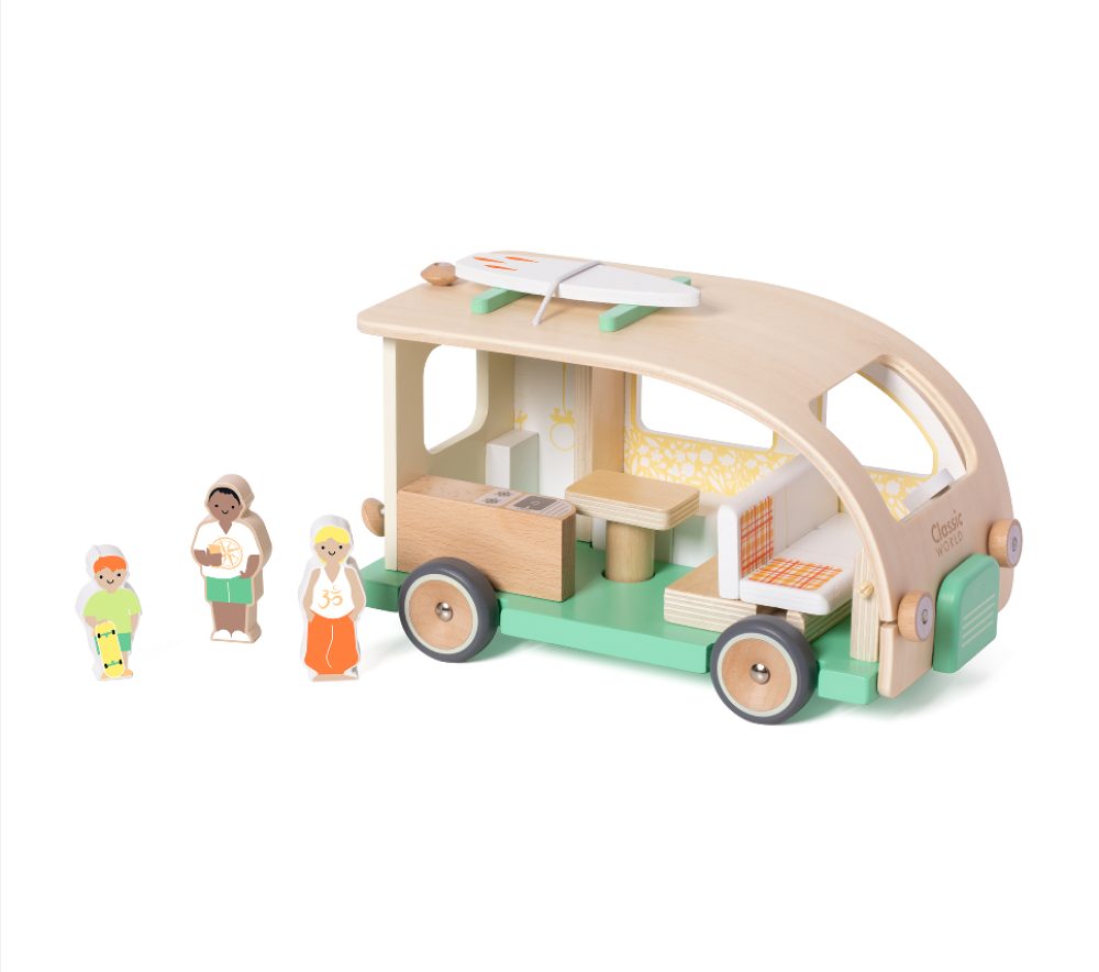 استمتعوا برحلة برية خيالية مع فان التخييم الخشبي (Camper Van) — لعبة مركبة خشبية تحتوي على تفاصيل داخلية تمكّن الطفل من إعداد "المعسكر" المصغّر في أي مكان!