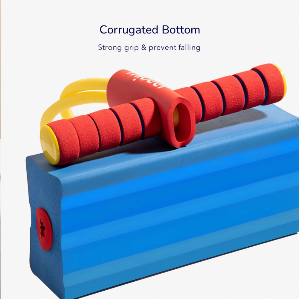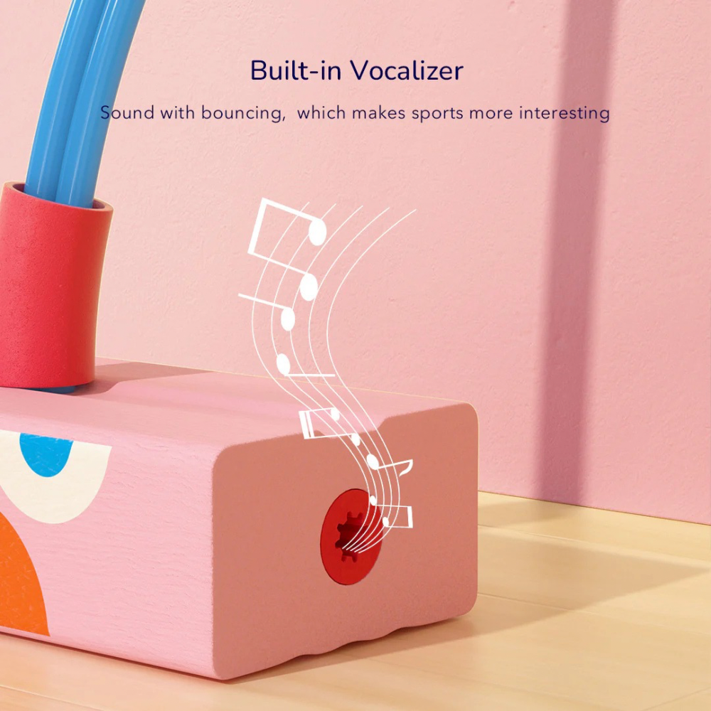 • مزود بصوت “صرير” أو صفارة مضحكة (squeaker) عند كل قفزة لتحفيز الطفل وتشجيعه على اللعب.
