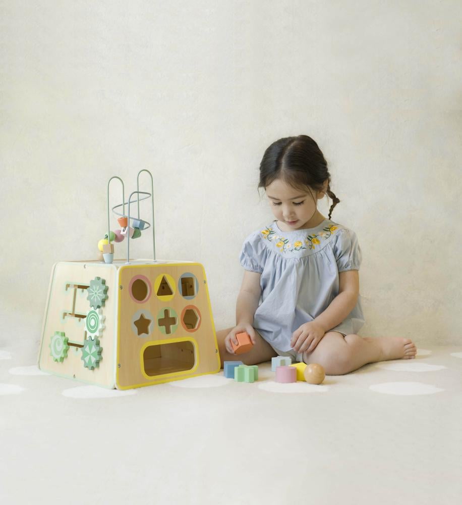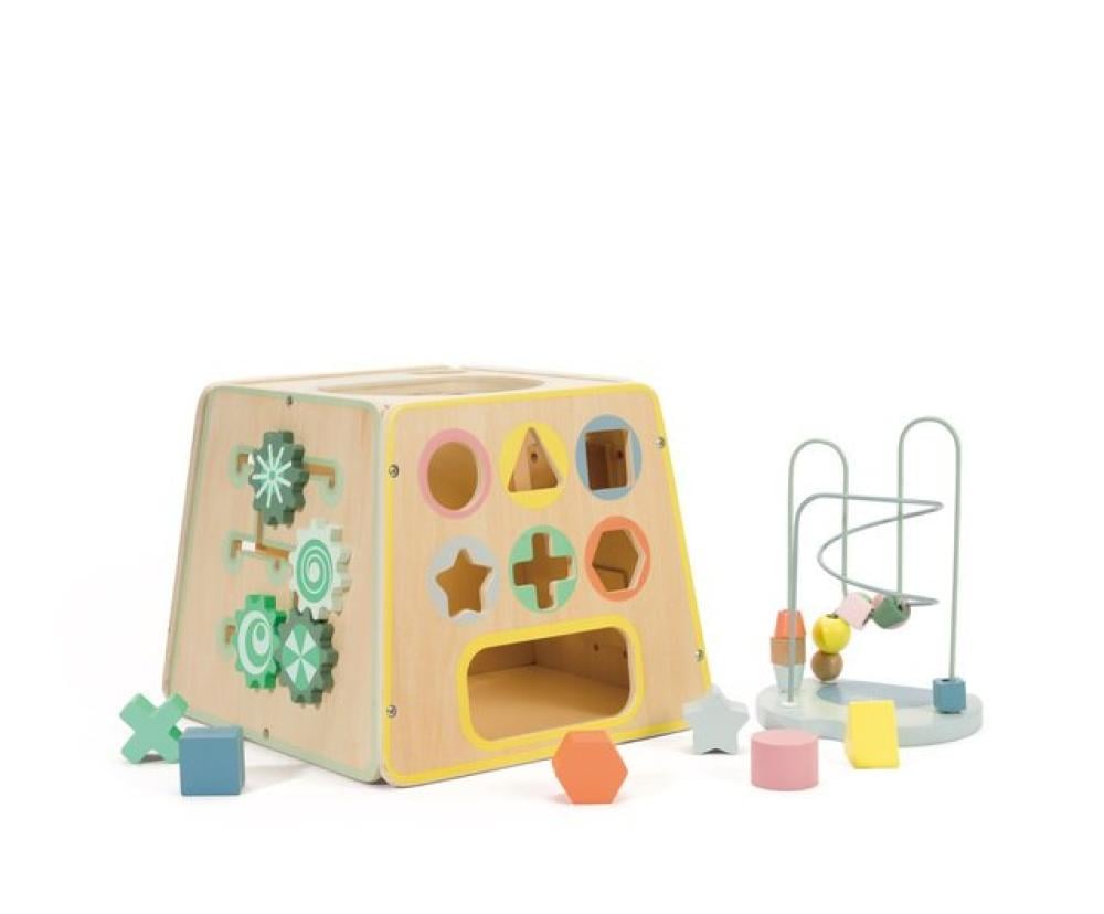 مكعب خشبي ابتكاري يضم خمس جوانب مليئة بالأنشطة المتنوعة الترفيهية والتربوية. هنا، سيكتشف الطفل أبواباً وأجزاءً تتحرك، تروساً، متاهة خرز، سبلايدر وأشكال هندسيّة ممتعة—صمم للمغامرة والاكتشاف من عمر 18 شهراً وما فوق