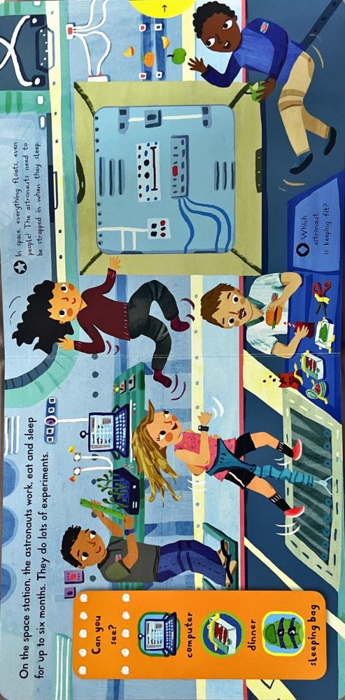 يقدم كتاب رواد الفضاء "Astronauts" التفاعلي تجربة رائعة و نشاط ذهني مميز للطفل حيث تجمع طيات أوراقه السميكة بين المعلومة المبسطة والنشاط الحركي التشويقي حيث يعتمد الكثير من المحتوى على اكتشاف المعلومة المشوقة خلف الرسومات والأشكال التوضيحية القابلة للتحريك.